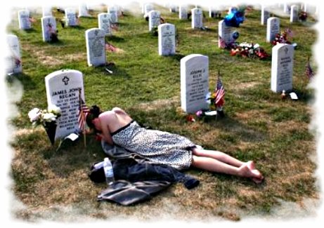 And the hidden one, her face undone, cries herself so deep. Her soldier boy, her only joy, lies permanently asleep.